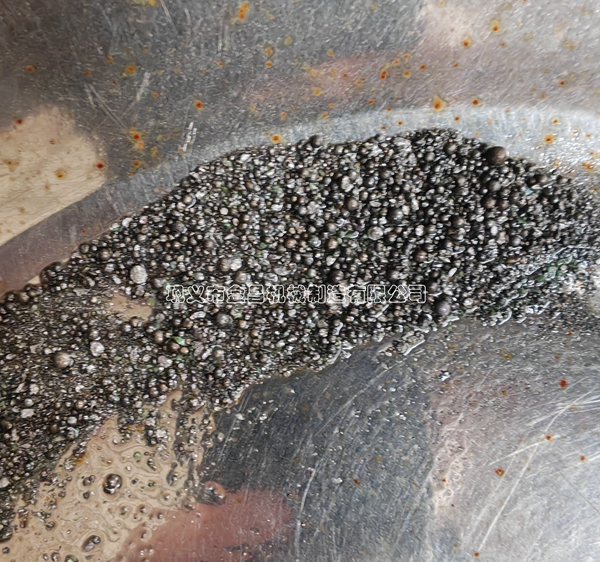 跳汰機是根據(jù)物體比重差進行分選的設備。冶煉渣破碎后,硅錳合金和廢渣在分離的狀態(tài)下,就可以進入跳汰機進行分選,跳汰機使用水為介質(zhì),水中不添加任何藥劑,使用的還是循環(huán)水,處理量也比較大,每個小時可以處理10-50噸,不錯吧。下邊圖片是分選出來的硅錳合金顆粒,是不是很干凈。