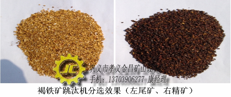 依照觀察的結(jié)果,我們將礦石在破碎機(jī)中,破到5毫米以下的顆粒,但是褐鐵礦中含泥量較大,大約有11%的含量,遇到這樣的情況,破碎前只能先進(jìn)行脫泥處理,不然無法進(jìn)入下一道設(shè)備進(jìn)行分選,破碎完成后,我們將褐鐵礦送入跳汰機(jī)進(jìn)行分選,最終獲得了上圖的褐鐵礦精礦。通過化驗(yàn)得知,褐鐵礦品位可以到達(dá)52.9%,完全達(dá)到客戶的預(yù)期要求。